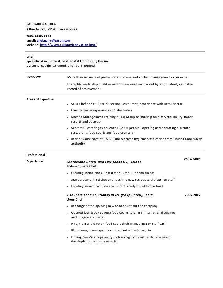 Chef De Partie Resume Sample: Executive Sous Chef Resume ...